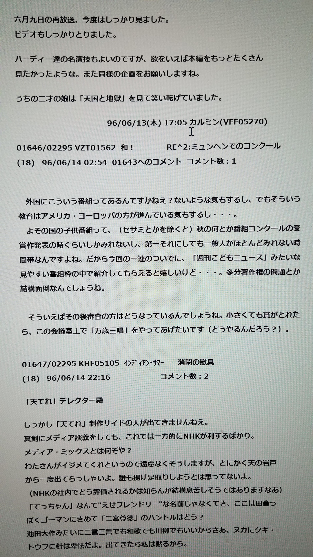 Thiese photos are documents(log) of “FTVA(TV forum A) No.9 room NHK/天才てれびくんホカ” of Nifty-Serve.