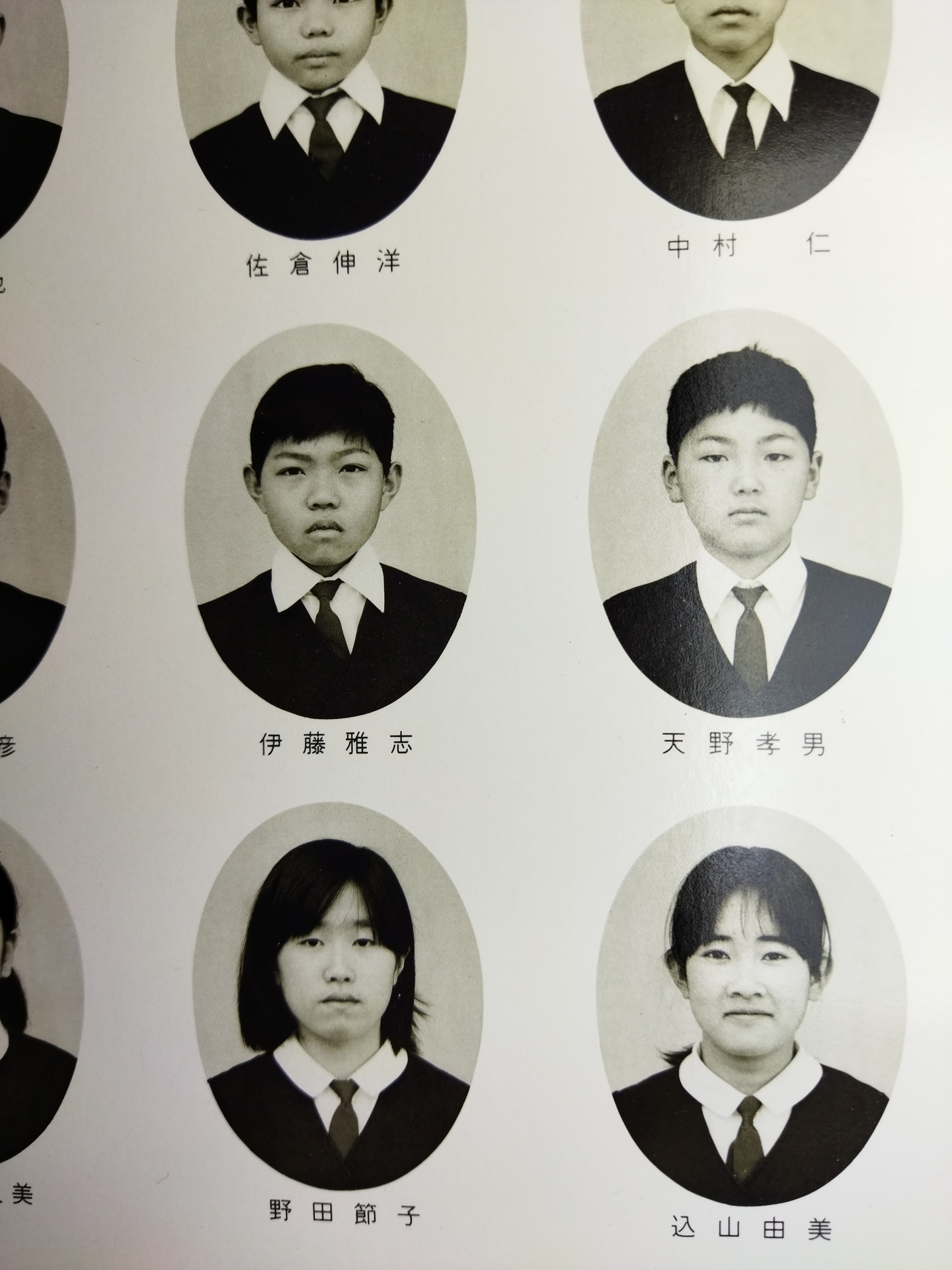 前から二列目、右から3番目が、明治大副学長の牛尾奈緒美(旧姓中村)の実妹の中村仁美。成績は学年で最下位で、知的障害者として扱われていた。姉の奈緒美が仁美に往復ビンタしているのを見たことがある。中村の家業は中村塗装店で自宅は被差別部落地区の淡島町(入江南町)にあった。授業参観にやってきた中村の母親は飯場の女のように学校でも怒鳴り散らした。奈緒美は母親からのストレス(暴力)を妹の仁美に向けていた。殴られすぎてバカになったのだろうと俺は考えていた。