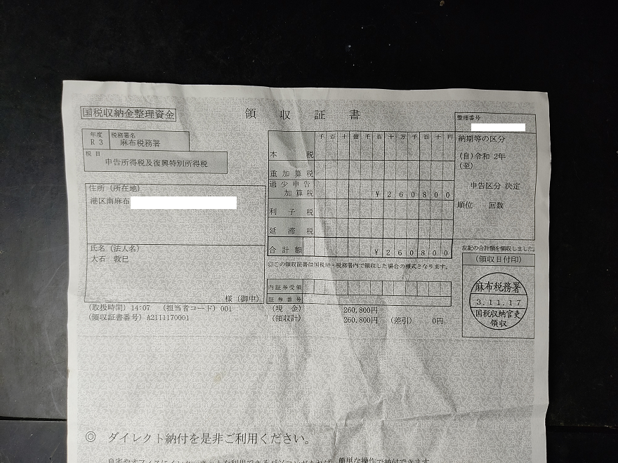 きのう会った税務署の担当者は、白髪混じりの短髪のなよっとした浅黒い背の低い男で、体に合わないシワの寄った細身のスーツを着て、サイズが大きすぎの靴をバタバタいわせながらでてきた。11月2日に、オーダースーツにカツカツと音がする木の靴底の靴をはいていった俺を嘲笑しているとわかった。「お前はこんなふうに見られているぞ!」の愛子の嘲笑だ。国税庁は何やってる。1時間以上待たせておきながら、愛子の命令で署員全員がエキストラで嫌がらせするな。血税を無駄使いするな。きのうは俺がスーツで行かなかったので、あらかじめスーツでいじめようと待機していたので怒っていた署員もいた。